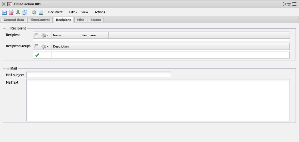 - ExecutionType: Here you can select whether the timed action should be executed as main user or recipient.