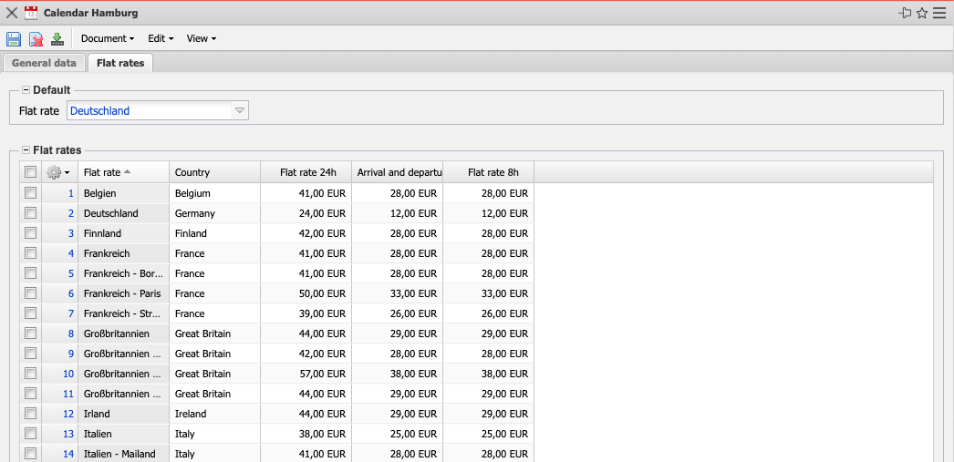 The Calendar mask manages site operating calendars for the system. Here it is possible to define the daily and weekly working hours as well as the number of working days per week for each location of the company. This data is needed for the overviews and resource planning (especially for the determination of the target working times). In addition, the key figures for working time management can be managed here.