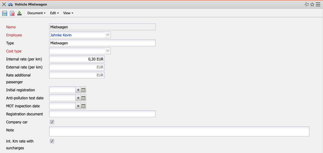 The vehicle mask manages the vehicles in the system. The vehicles are assigned a holder and dates for examinations. The vehicles are required for the travel expenses accounting.