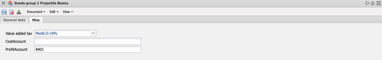 - CostAccount and ProfitAccount: Here you can define the expense and revenue account for postings.