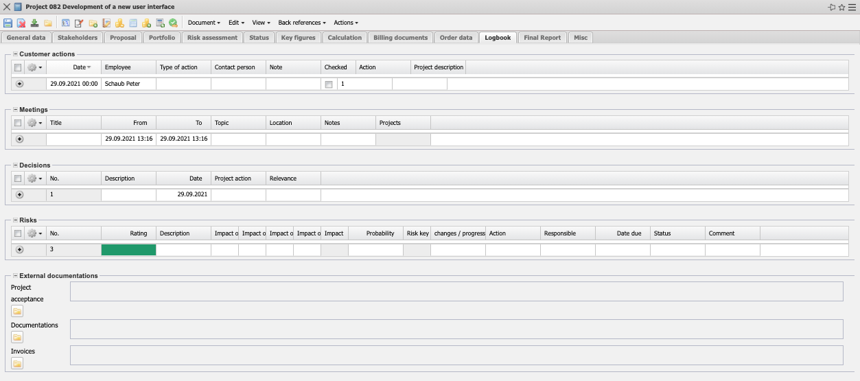 - Risks: Here (if the Risk Management module is enabled) the risks are displayed.