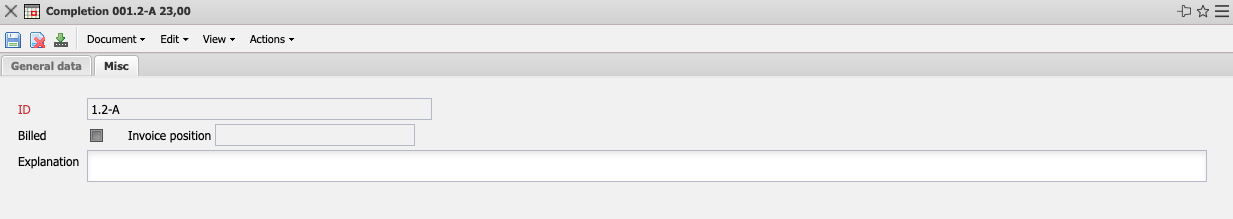 - ID: This field displays the number of the completion. The number is automatically assigned alphabetically by the system.