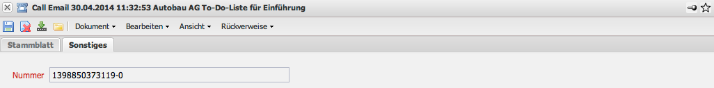 Auf diesem Reiter ist die Nummer des Calls hinterlegt. Diese Nummer wird vom System automatisch vergeben, ist jedoch aber vom Anleger des Calls, vor dem Abspeichern einmalig veränderbar.