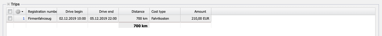 - Billed: This element indicates whether the trip has already been settled. This indicator is set automatically by the system if the trip is transferred to an invoice and this invoice has been billed.