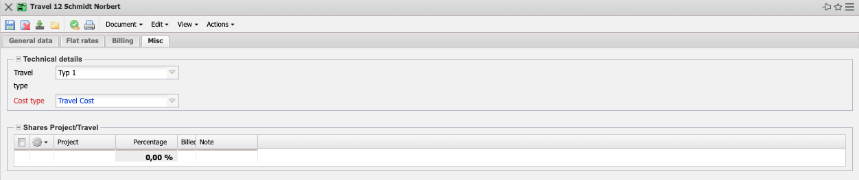 - Shares Travel/Project: This field enables you to assign a trip to several projects. This assignment is only made on a percentage basis!