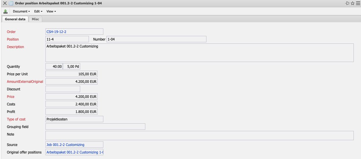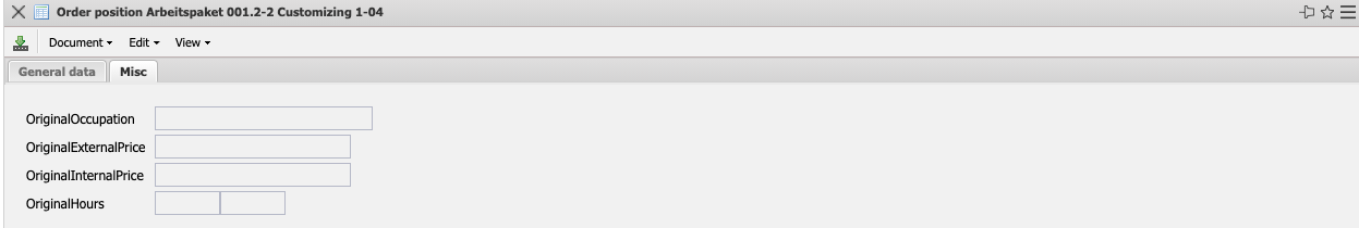 - AmountExternalOriginal: This field indicates the amount that is offered to the customer for this item. This value is preset by the system from the planning data or the associated quotation item.