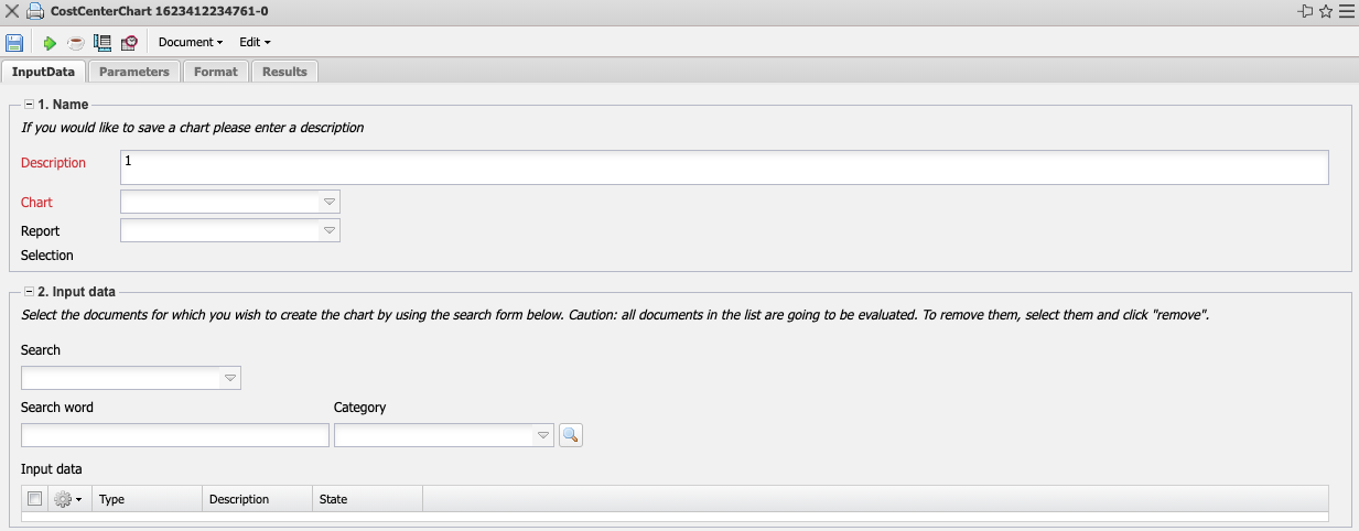 • Input Data: The selected selection criteria for the evaluation are listed below this field. These input data can come from the professional search, the standard search engine or the personal file.