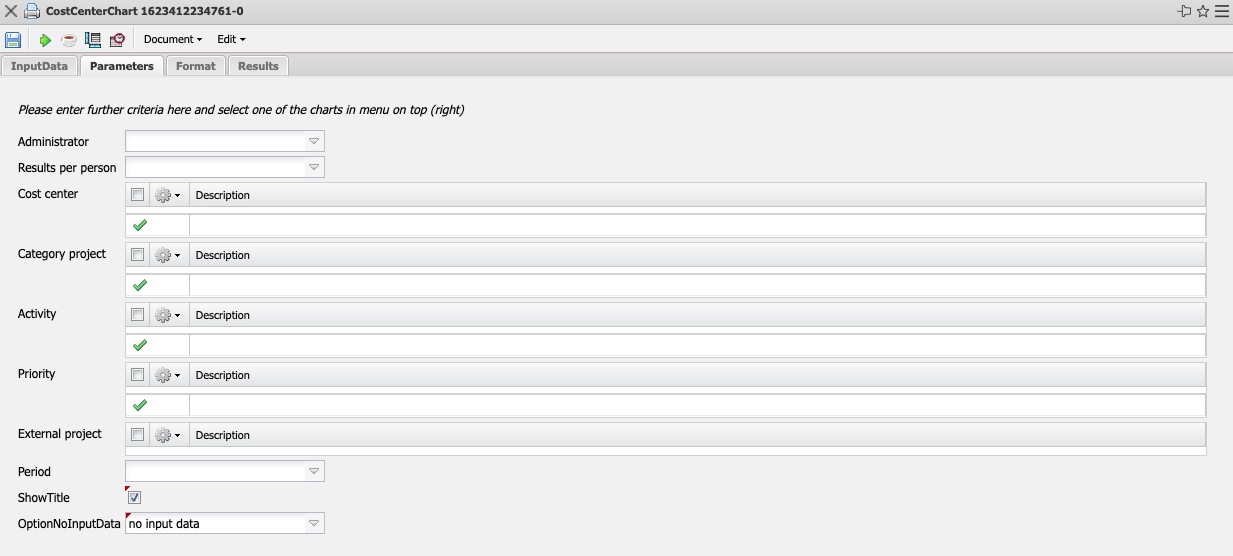 • Cost Center: In this selection box you can choose cost centers as selection criteria. These cost centers refer to the cost center of the projects and restrict the selection of the projects considered accordingly (only projects that are assigned to this (these) cost center(s) are displayed).