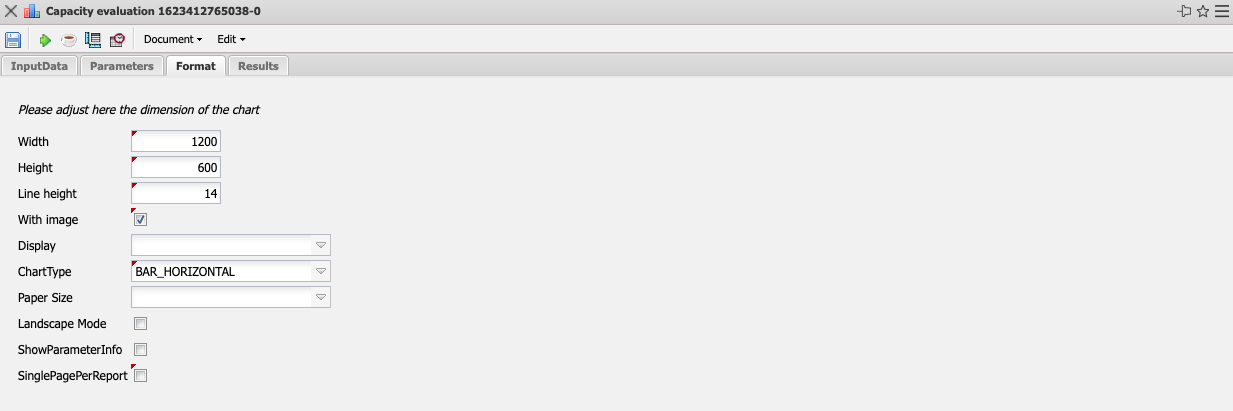 • Paper Size: In this selection box, the paper format can be specified. Based on the entered size of the sheet, the evaluation is displayed larger or smaller.