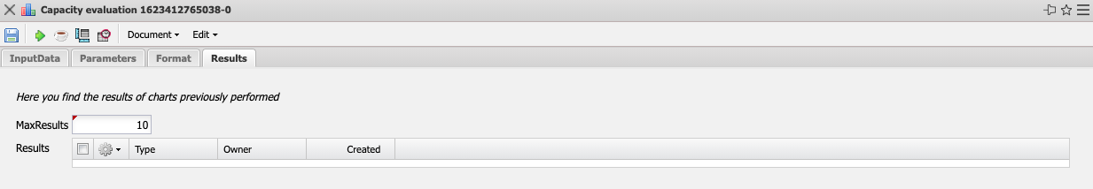This tab contains the maximum number of results and the results of evaluations already performed.