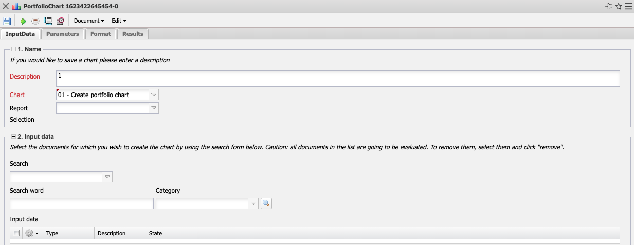- Input Data: This field lists the selected selection criteria for the evaluation. This input data can come from the professional search, the standard search engine or the personal file.
