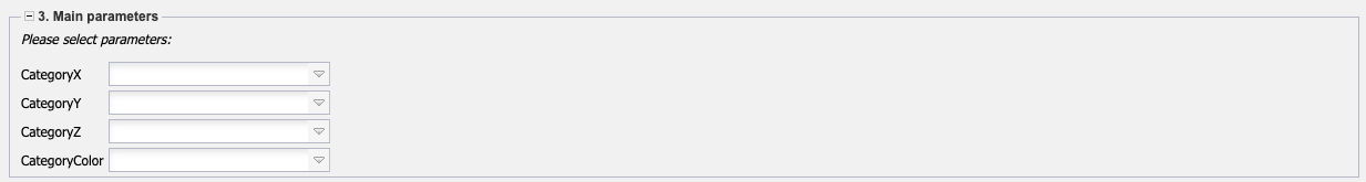 - X, Y, Z Category and the Color Category: These selection boxes refer to the evaluation axes and support the above mentioned key figures.
