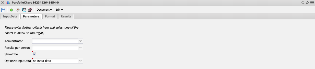 The portfolio evaluation evaluates combinations of projects (portfolio) over several axes. The basis of this evaluation is the combination of projects in the mask portfolio. In this mask the projects can be compiled and the axes for the evaluations can be predefined.