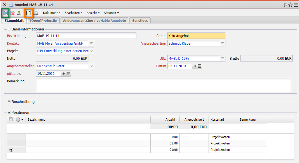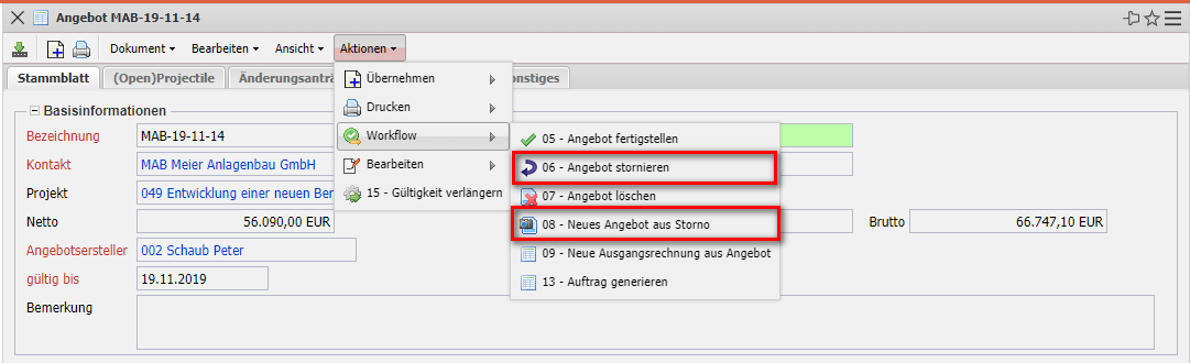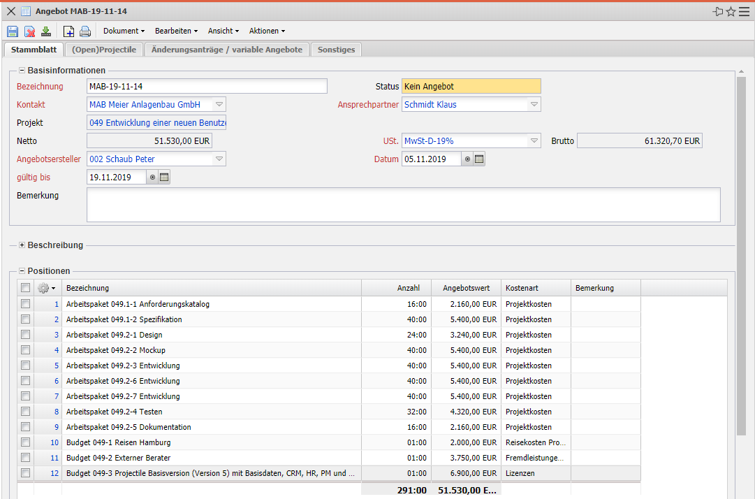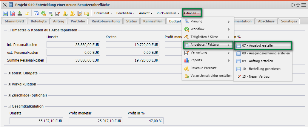 3.05 Kalkulation, Angebote, Auf-träge und Projektfreigabe