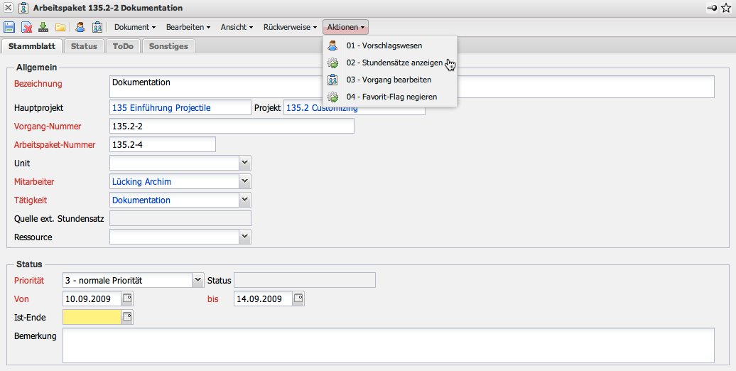 In dem Arbeitspakt eines Projektes das zu dem Kunden gehört, der eine Kundenweise Tätigkeit zugewiesen bekommen hat, wird nun dieser Satz verwendet. Im Arbeitspaket besteht mit Hilfe der Aktion “Stundensätze anzeigen” …