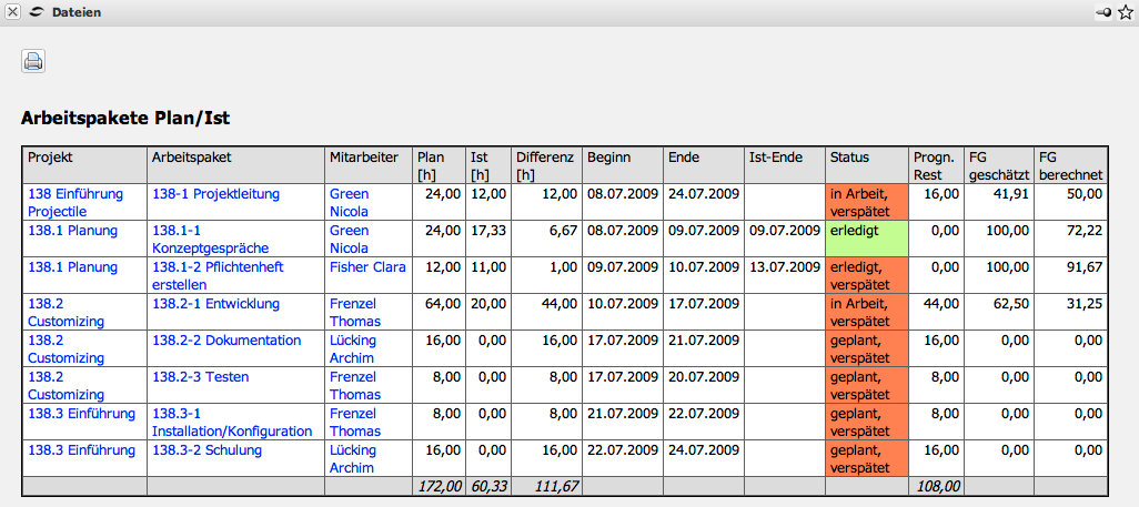 Arbeitspakete Plan/Ist