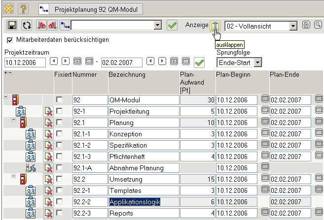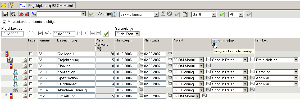 .. bezüglich der Mitarbeiter und deren Aufwände in der Planungskomponente eingesehen werden.