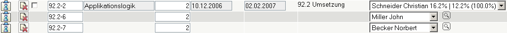 Im Dialog stehen die Detailinformationen zum Arbeitspaket und die zugeordneten Mitarbeiter zur Verfügung. Im folgenden Beispiel werden für das Arbeitspaket Applikationslogik zwei weitere Mitarbeiter zugeordnet.