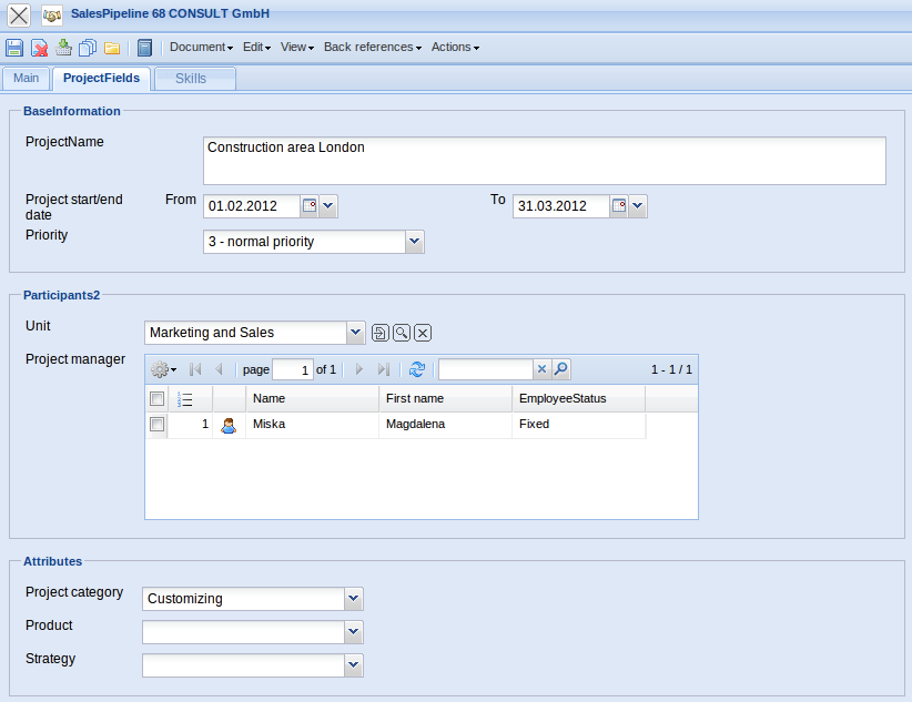 - Employee: This field specifies the publisher of the sales pipeline. The emplyees can be difined or changed in the dokument Employee.
