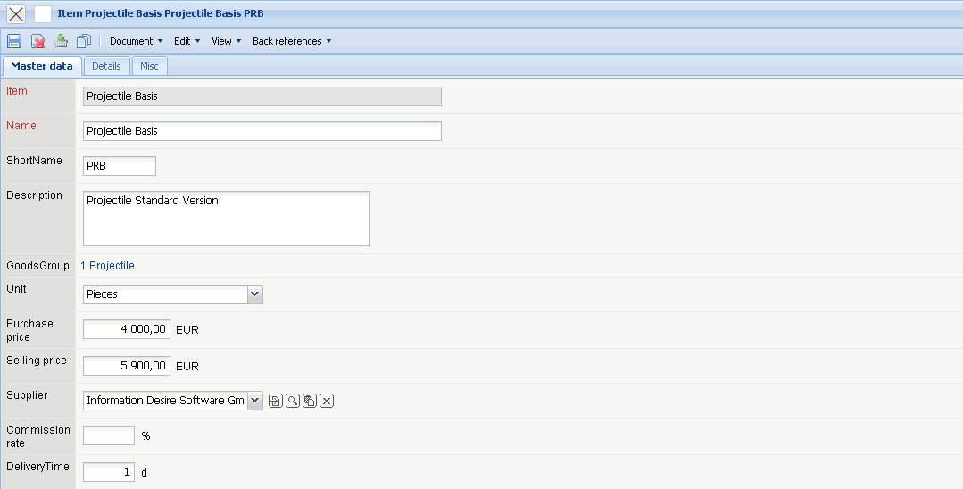 • Delivery Time: The delivery time in days (with supplier items) can be entered here. This field is only of informative character.