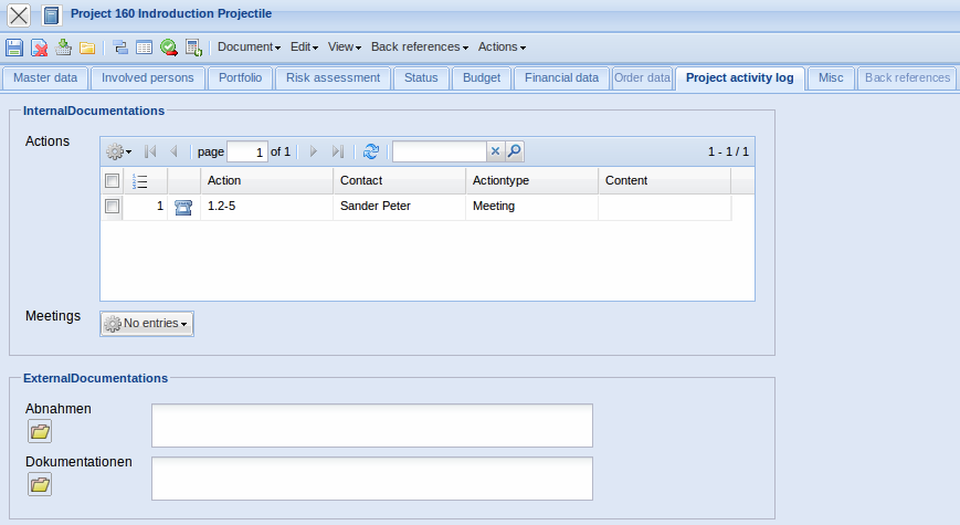 - Meetings: When using the module “Complex” references to the issues and meetings can be stored here.