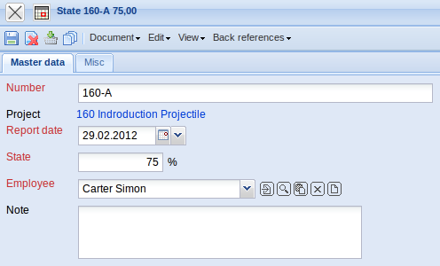 - Project: In this field the respective project is selected, to which an estimation regarding the degree of completion is made. The projects can be defined and modified in the project form.