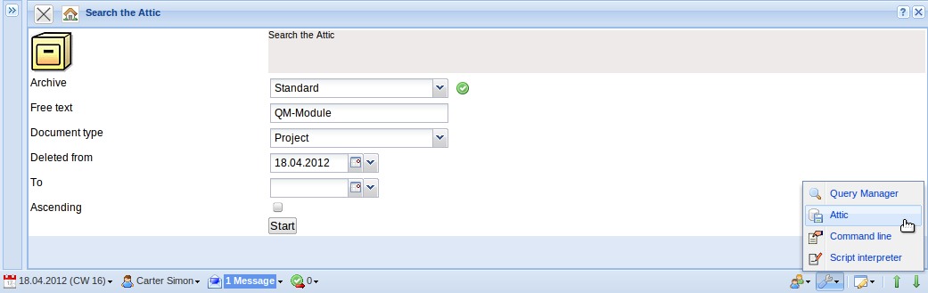 When using the archive, all deleted and/or archived data records from Projectile are saved as XML files on the web server during the deleting process. With help of the archive, this data can be selected and transfered back to the database.