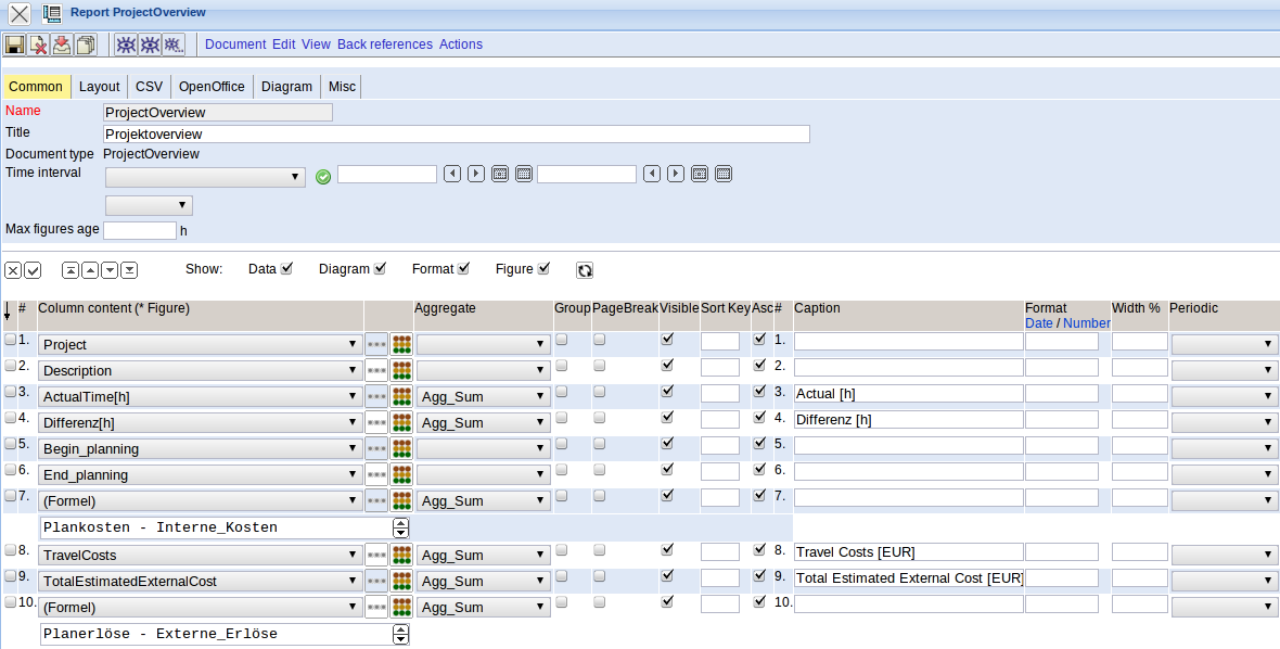 In Report-Designer columns can be selected (also through various tables), resorted and renamed, new columns from existing information can be calculated, as well as using various aggregate functions, etc. Furthermore, grouping with and without subtotals can be performed, the layout of the report adjusted or graphical charts configured.