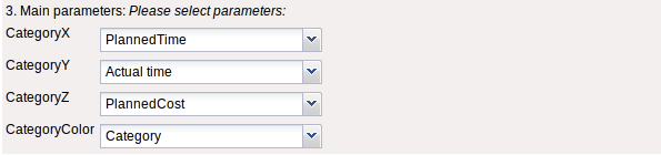 - X-, Y-, Z- and Color Category: These check boxes refer to the chart axes and support the above specified key figures.