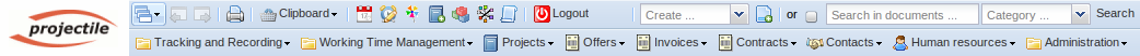 The top navigation bar consists of a top menu bar, previous/next functionality, a toolbar, a search machine and „home“ functionality (Projectile logo).