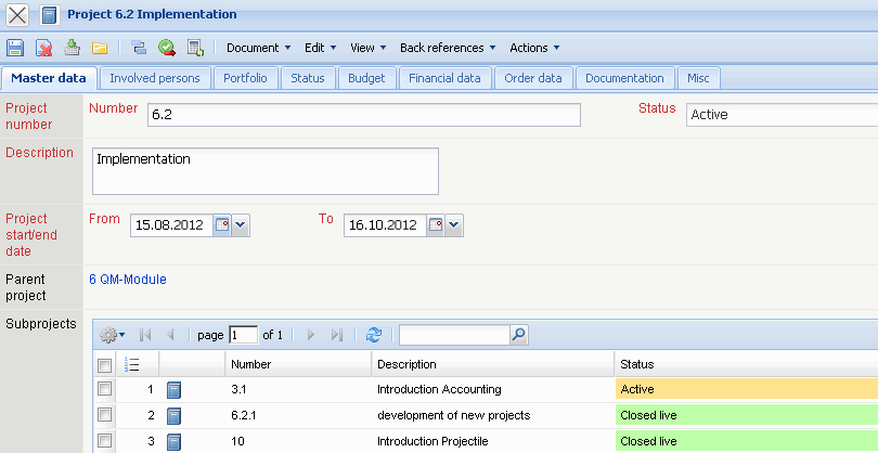 … and the appropriate document (here the project MSP) is opened in the left part of the application.