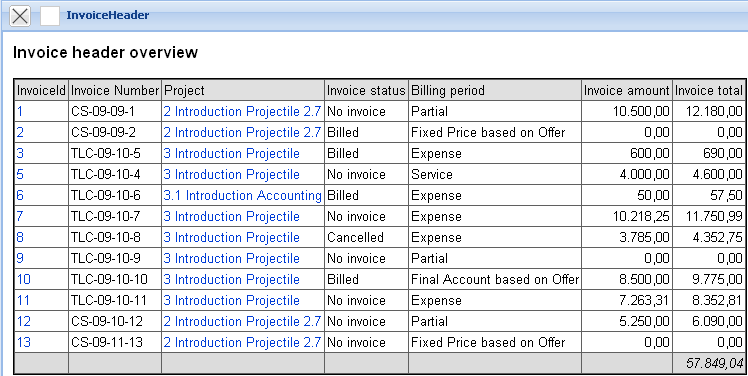 … and then all billed invoices between 01.07.2009 and 31.12.2009 prepared for all customers with “TLC” in the report.