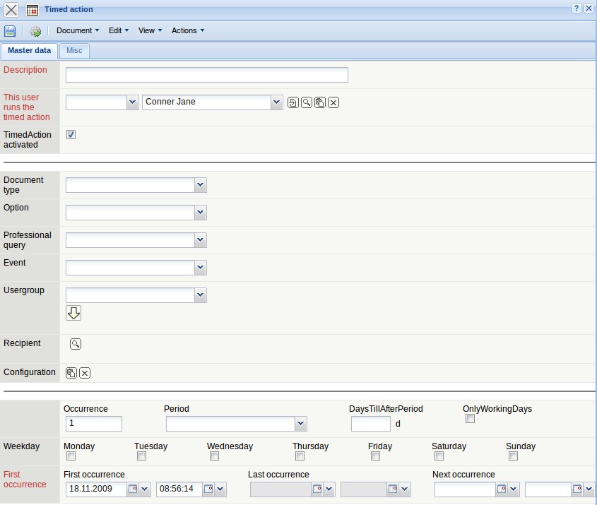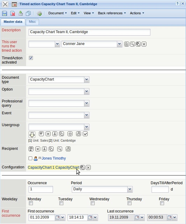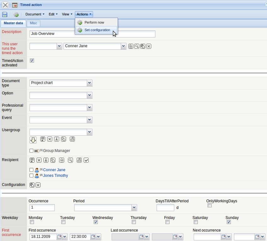 … a timed action document with pre-populated fields is opened. The configuration is directly transfered here.