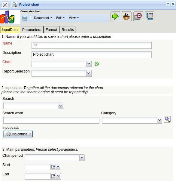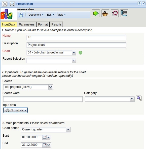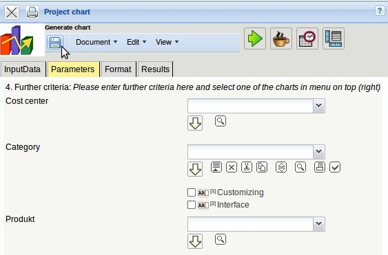 … configure the charts. A project chart is opened and the selection criteria can be defined here (see also chapter 2.05).