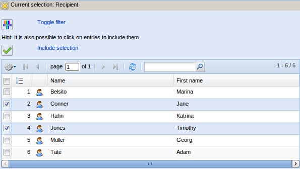 Using the functionality “find available documents” individual employees (recipients) can be assigned and the an appropriate list is displayed. The employees can be selected and then included here.