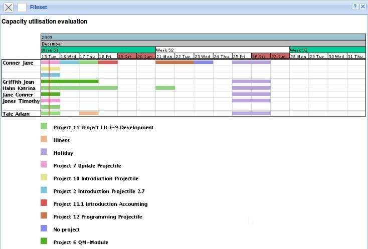 Note: Unlike the variants II and III, this chart does not take into account the planned periods of work packages! This chart is used for disposition of employees without any assignment to projects (for example, for support).