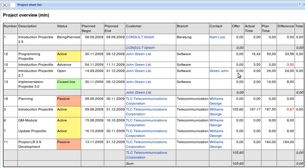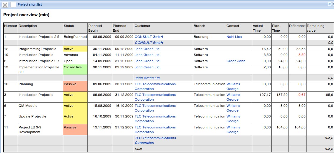 All status information, which include the value “Live” will be assigned with a green background color (all projects, which are completed).