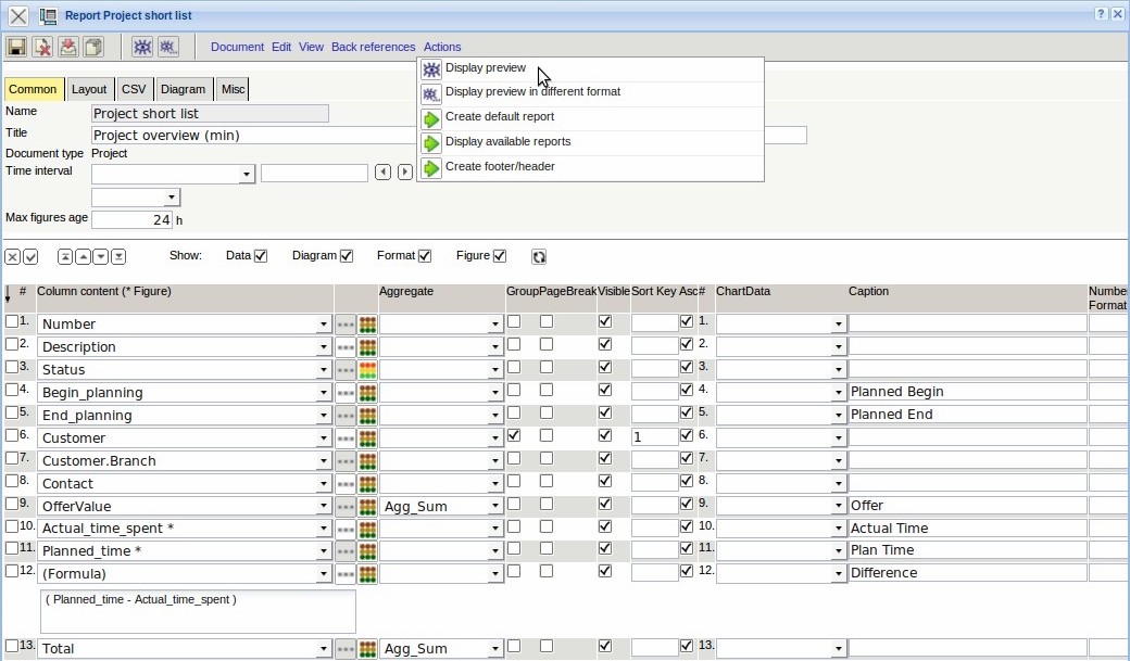 Afterwards some fields are rearranged in the report and by using the functionality