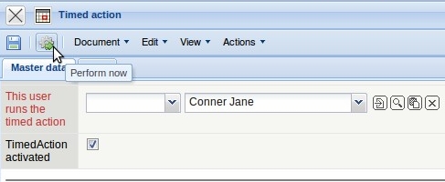 The timed action can be tested immediately, using the action “perform now”. This action forces an immediate performance of the timed action.