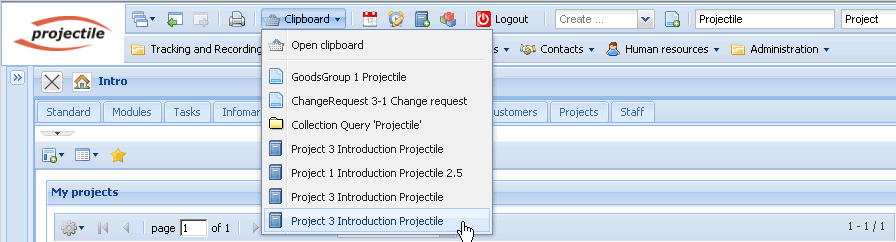 and documents can be directly opened with a mouse click on the link from the personal clipboard.