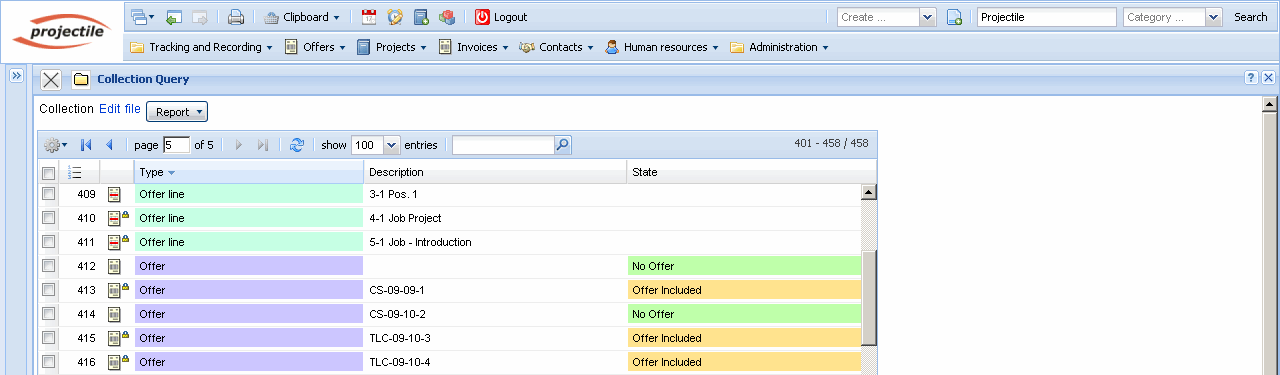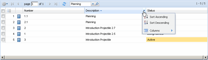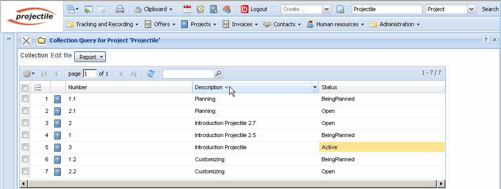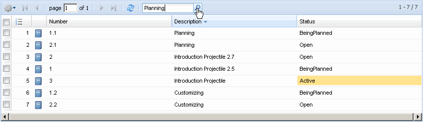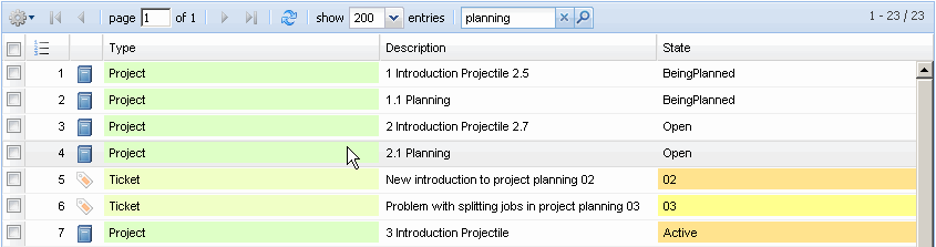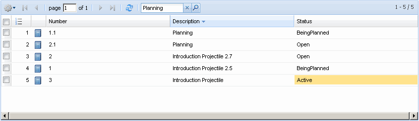 The following illustration shows a possible result list with the search query: In the result list all documents are listed, in which the defined search string “Projectile” has been found.