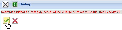 Searching the complete data pool without selecting a category is also possible. Because these searches can take longer, a warning appears when no selection has been found.