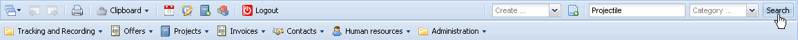 The search machine is used for finding data. Entering a search string in the search box and selecting a catagory, all documents in the catagory are searched using the string on the basis of a full text search. Using the category field limits the selectable document types.