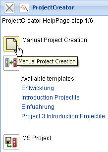 In the following example, the project can be manually created with the function “Manual Project Creation”.