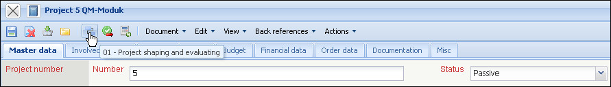 Firstly, a new document is opened with various preset fields from the type “Project”. Next, the project description …