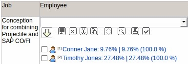 After the employee is selected, the entry must be confirmed (if javascript is not enabled) by clicking on the green check mark. This mechanism can be applied repeatedly: