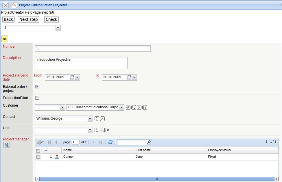 Using the action “Creating a template”, a template can be created from an existing project. This template contains the complete project structure (sub-projects, jobs, jump sequences, milestones and budgets) in parametrical form. The absolute dates (plan start and plan end) become relative dates dependent on the parameter generated from the project assistant.