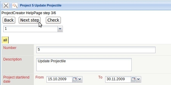 After modifying the project's key figures, the option for the next step, if and when the start date and end date should be changed is selected. After entering all necessary values, it can be proceeded to the next step using the next button.