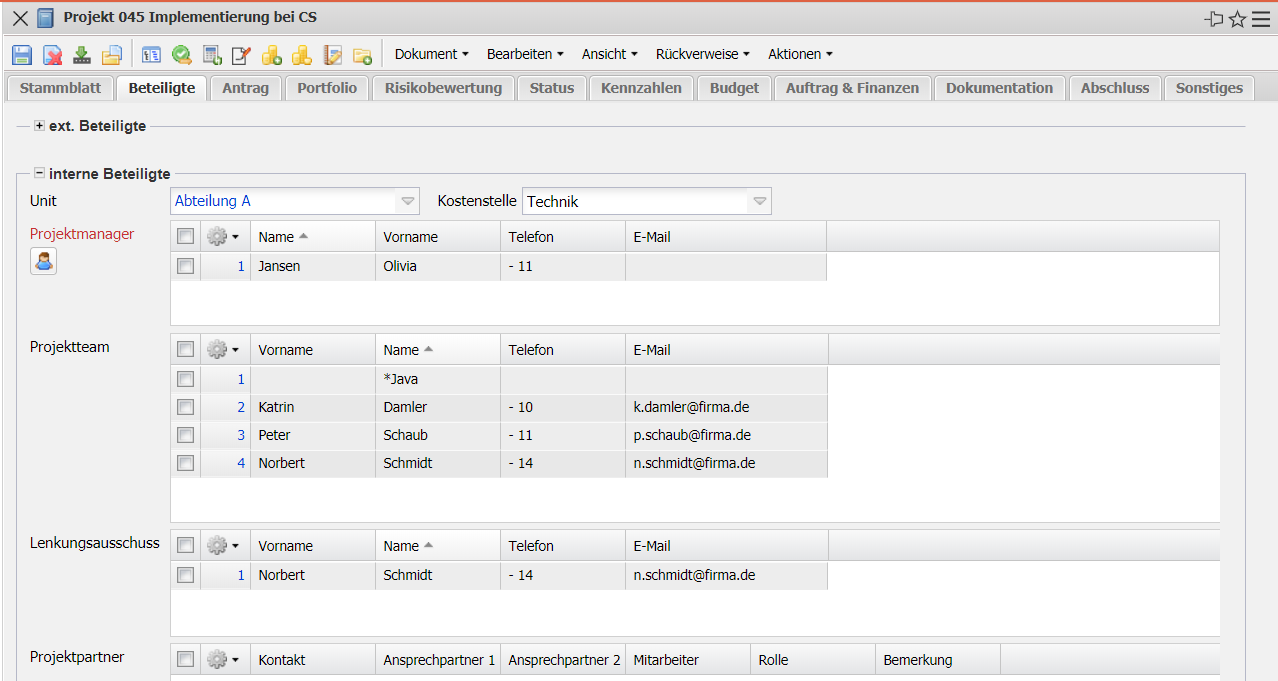 - Lenkungsausschuss: Hier können die Mitglieder des Lenkungsausschusses hinterlegt werden