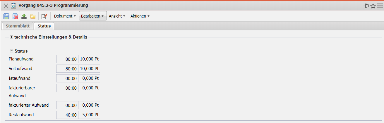 • Ist-Aufwand: Der Inhalt dieses Feldes zeigt an, wie viel Stunden bisher auf diese Aufgabe in der Zeiterfassungskomponente gebucht wurden.